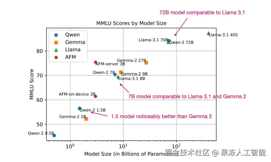 下面是与其他 LLM 在 MMLU 基准测试中的简要对比。(需要注意的是,MMLU 是一个多选基准测试,因此有其局限性,但仍是评估 LLM 性能的最受欢迎方法之一。)