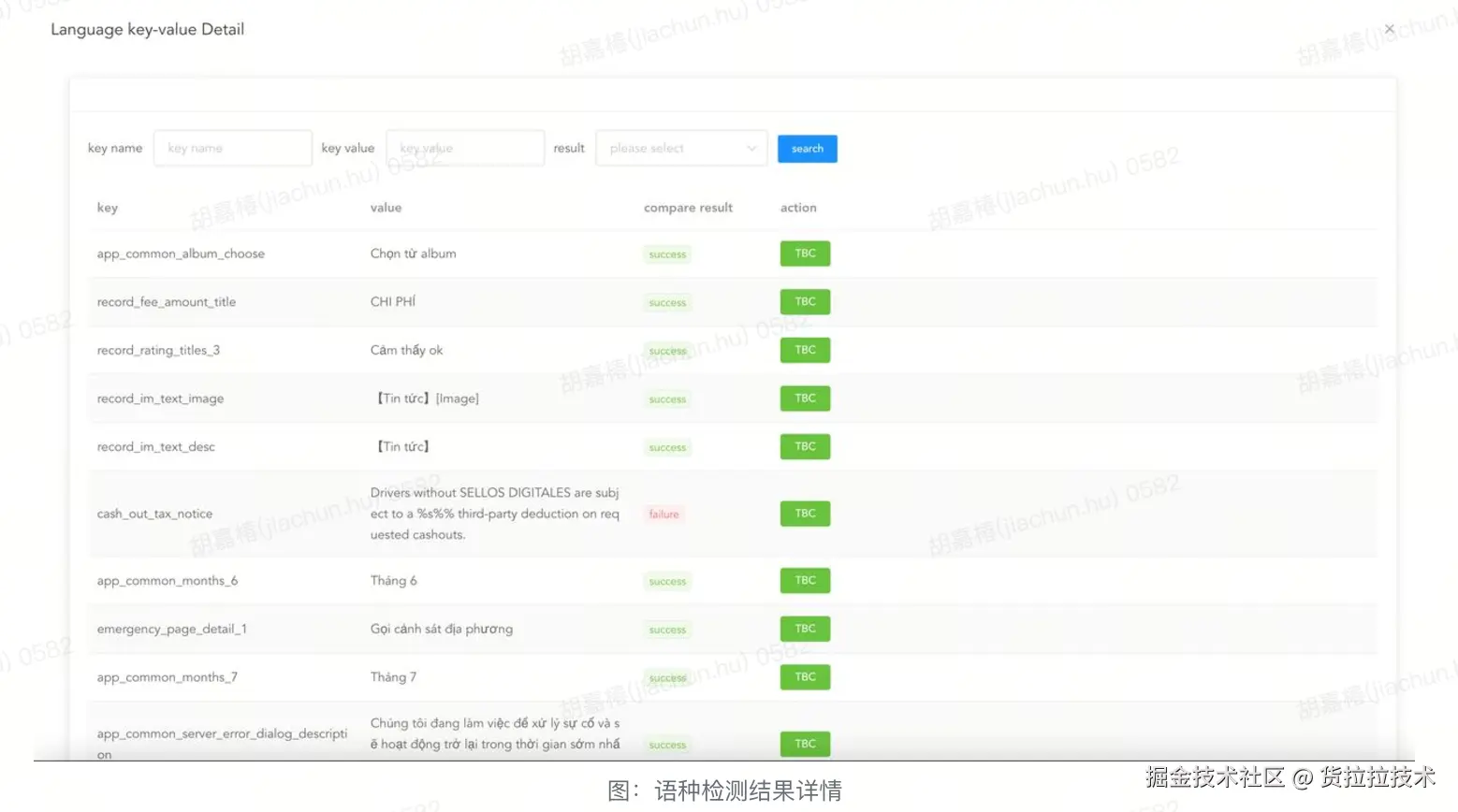 在翻译文案的测试过程中,我们发现最常见的是未翻译,即某些场景的key对应的还是默认语种英文,并未翻译为当地语言,为了花较小的成本批量发现此类问题,在每次提测时,我们都对翻译内容进行一次全量的语种检测。