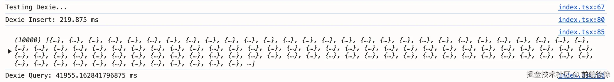 | Dexie | 219.875ms | 41955.162ms |
