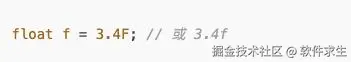 我们可以在小数后加一个后缀 F 或 f,告诉 Java 编译器这是一个 float 类型: