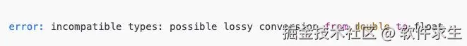 然而,float 只占 4 字节。如果直接把一个 double 赋值给 float,就可能导致 精度丢失,因此 Java 编译器会直接报错,以避免隐式的损失。