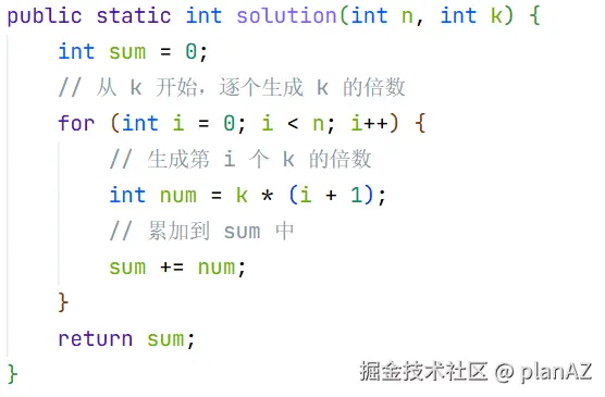 k开始,逐个生成k的倍数,直到生成n个不同的数。 - 计算和:将这些数相加,得到数组元素之和。