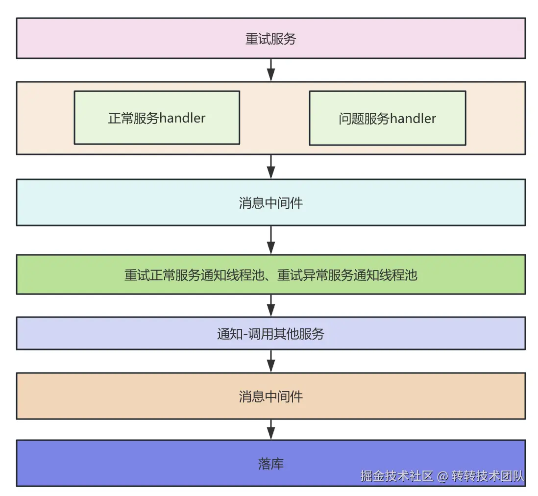实现这种重试的消息机制可以利用分布式定时任务调度框架,一般为了提高重试效率,会采用分片广播这种方式,自己做好消息重复发送的控制,我们也可以利用调度线程池来实现。