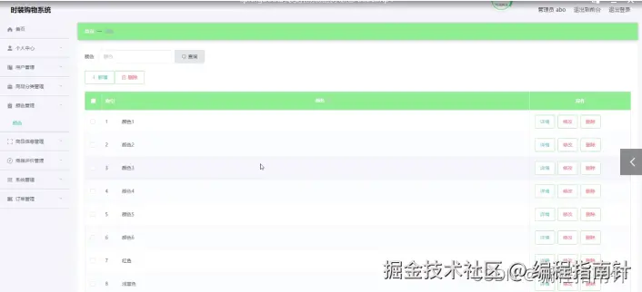 颜色管理,在颜色管理页面中可以查看颜色等信息,并可根据需要对颜色管理进行详情、修改或删除等操作,如图5-4所示。