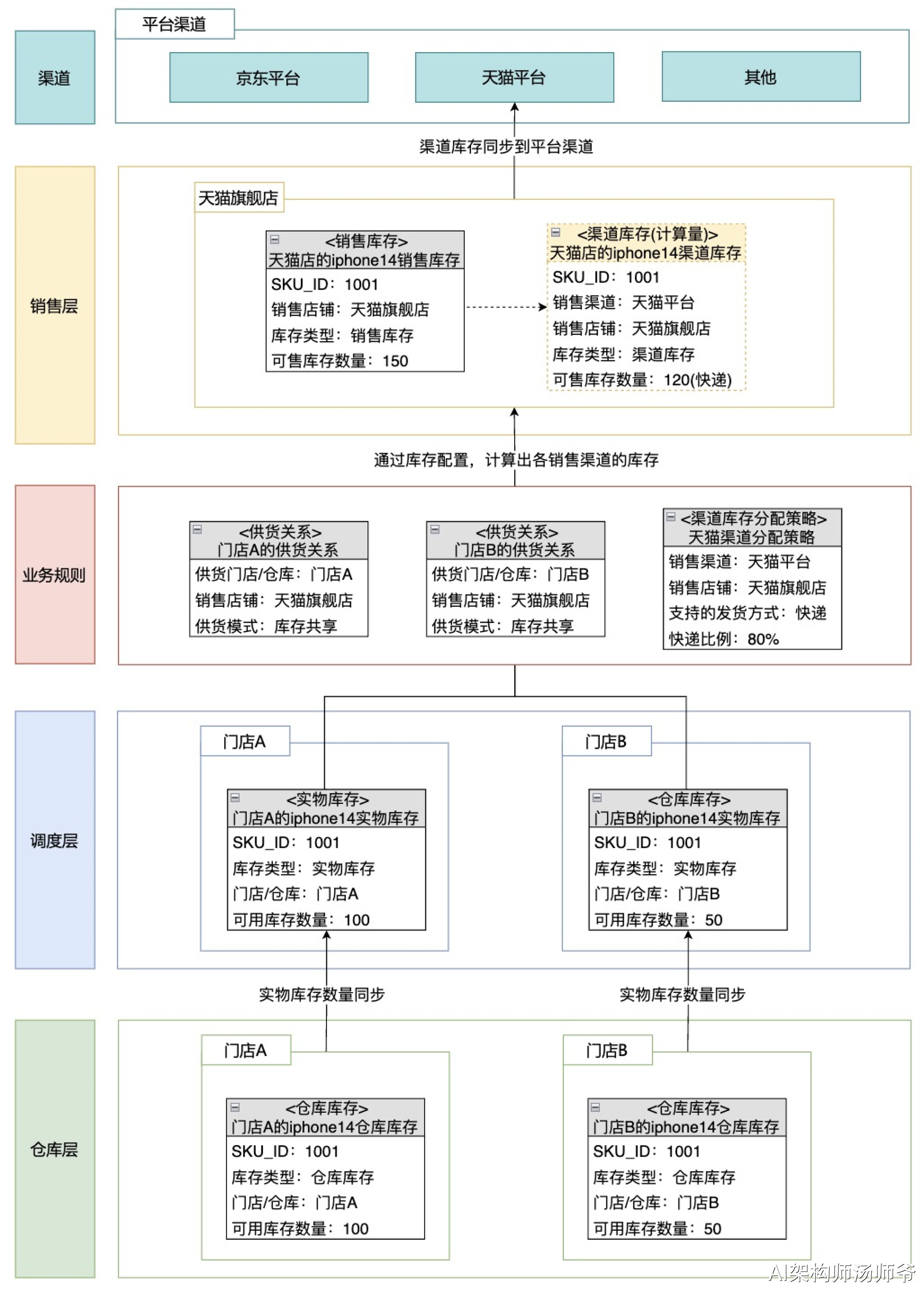 在库存管理体系中,调度层是连接仓库层与业务层的关键桥梁,负责汇总各仓库和门店的库存状态,以支持全局库存的统一调配。