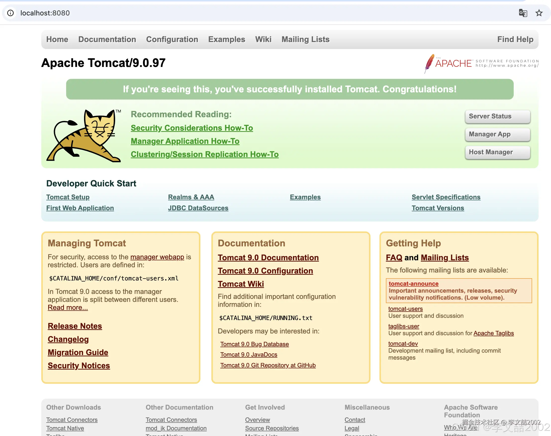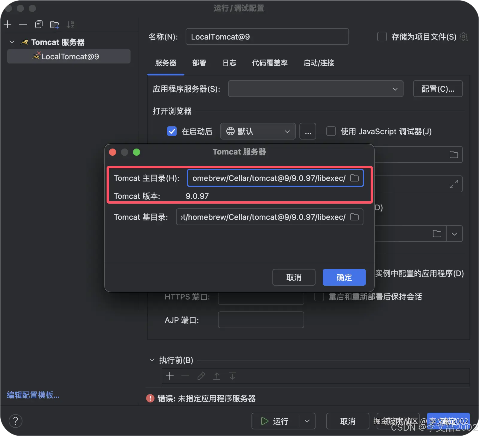 启动:brew services start tomcat@9