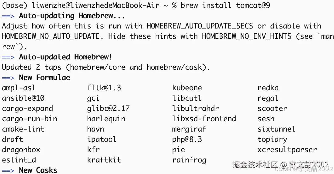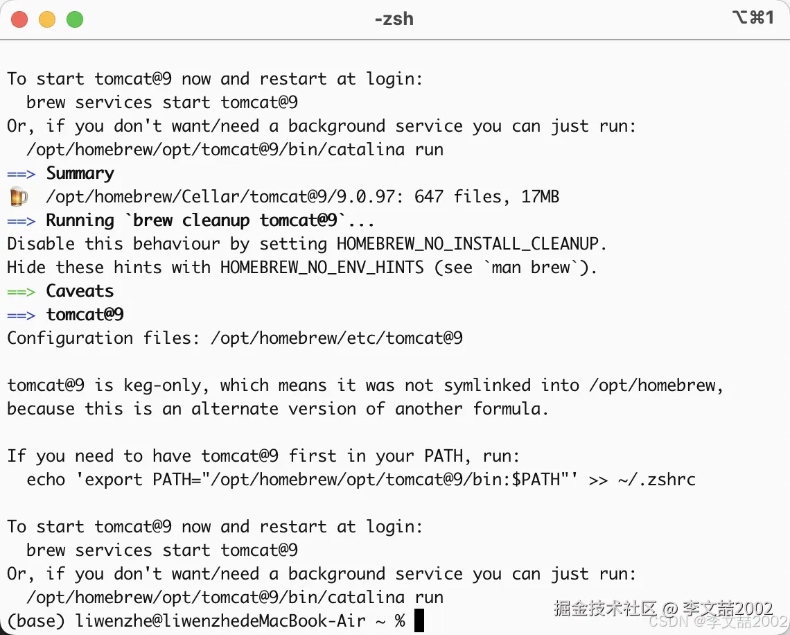 在最后brew告诉你如何配置环境变量以及如何启动tomcat~