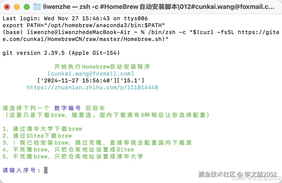 随后按照提示内容操作即可安装brew。