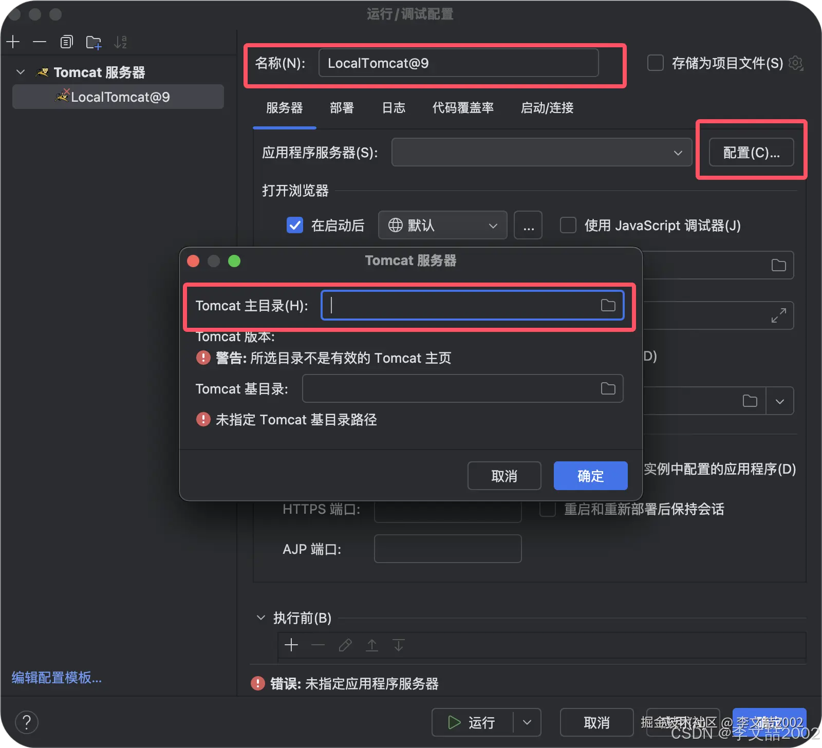 填写好配置名称,点击配置,随后把刚才找到的目录复制进去,点击确定!