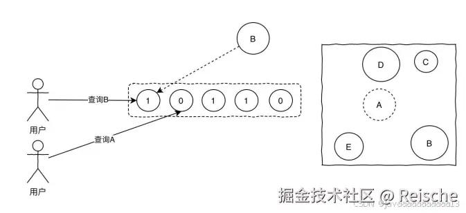 这样当⽤户再次来查询A,⽽A在布隆过滤器值为0,直接返回,就不会产⽣击穿请求打到DB了。