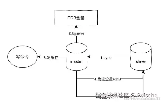 master收到sync之后,执⾏bgsave,⽣成RDB全量⽂件