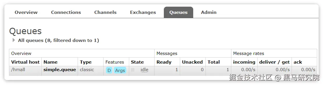 放行以后,由于抛出的是业务异常,所以Spring返回ack,最终消息恢复至Ready状态,并且没有被RabbitMQ删除: