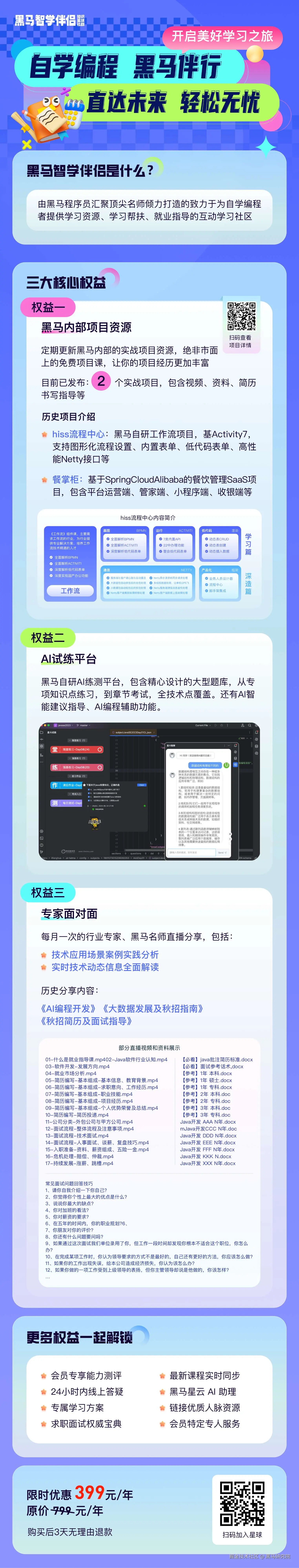 黑马程序员最新推出的《黑马智学伴侣》服务,可以解决你的所有问题,伴你自学之路轻松无忧!