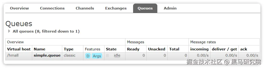 AmqpRejectAndDontRequeueException异常。查看RabbitMQ控制台,发现消息被删除了,说明最后SpringAMQP返回的是reject