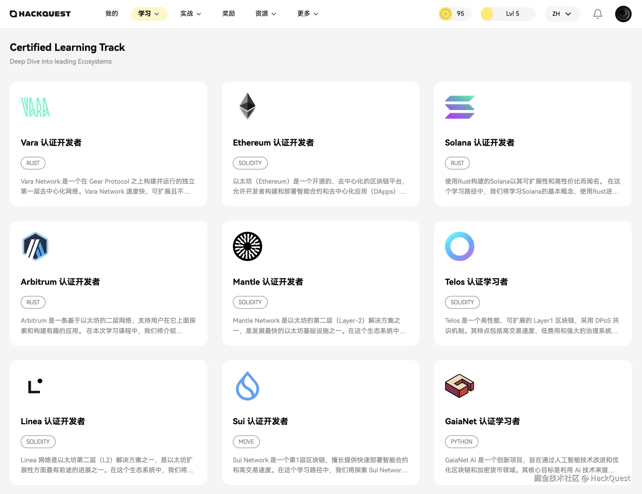 - 我们已和 15+ 头部的生态/公链合作,成为唯一可以获得生态/公链官方签发的链上证书的学习平台