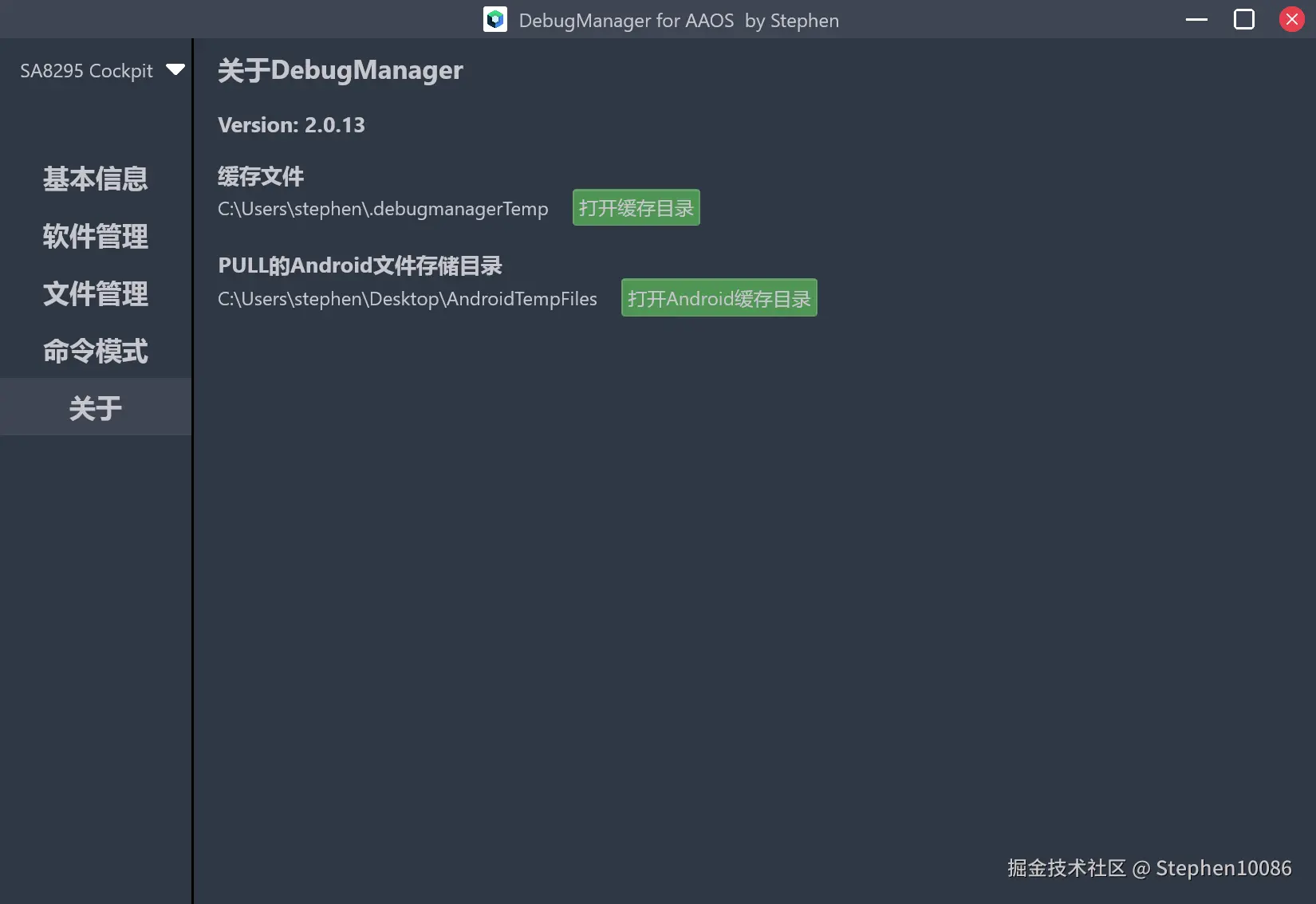 最后就是关于页了,显示软件版本,缓存文件目录等。通过PlatformAdapter工具类获取路径,执行打开界面即可。