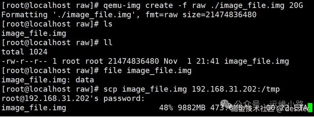 另外我们在解释kvm主机的镜像文件的时候,KVM-磁盘格式介绍说过,如果raw格式,即便是空文件,通过网络传输的时候,也会传输定义的大小,如下图。