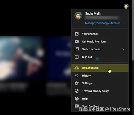- 导航至“音乐”>“我的音乐”>“上传音乐”。
