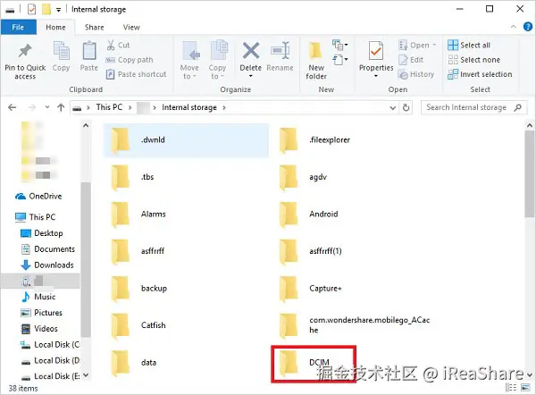 - 导航到 iPhone 上的 DCIM 文件夹并拖动所需的图片和视频。