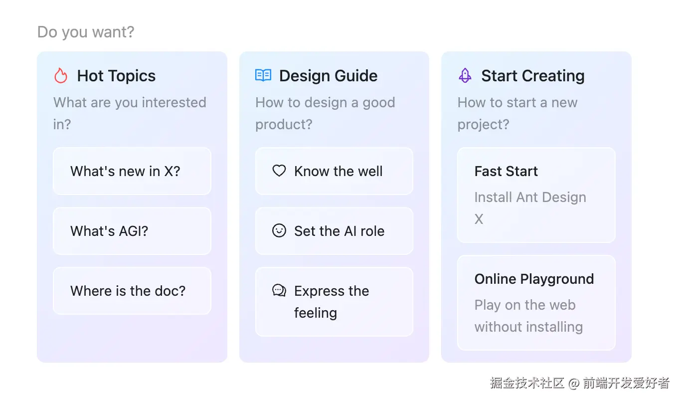Ant Design X 提供了一系列基于 RICH 交互范式的组件,包括: