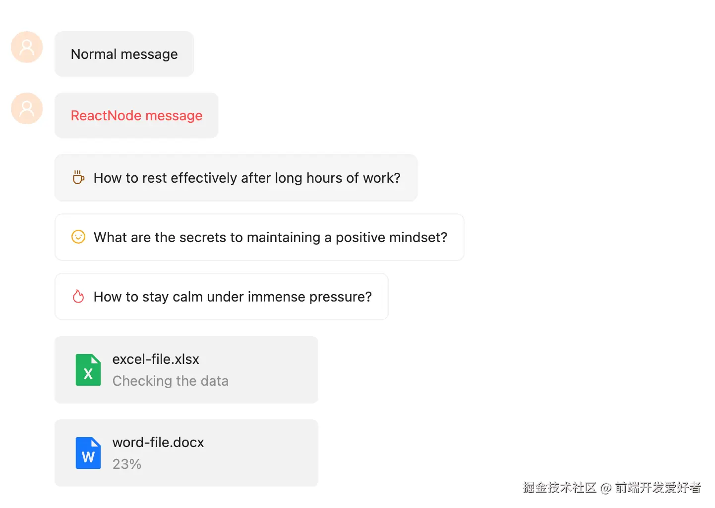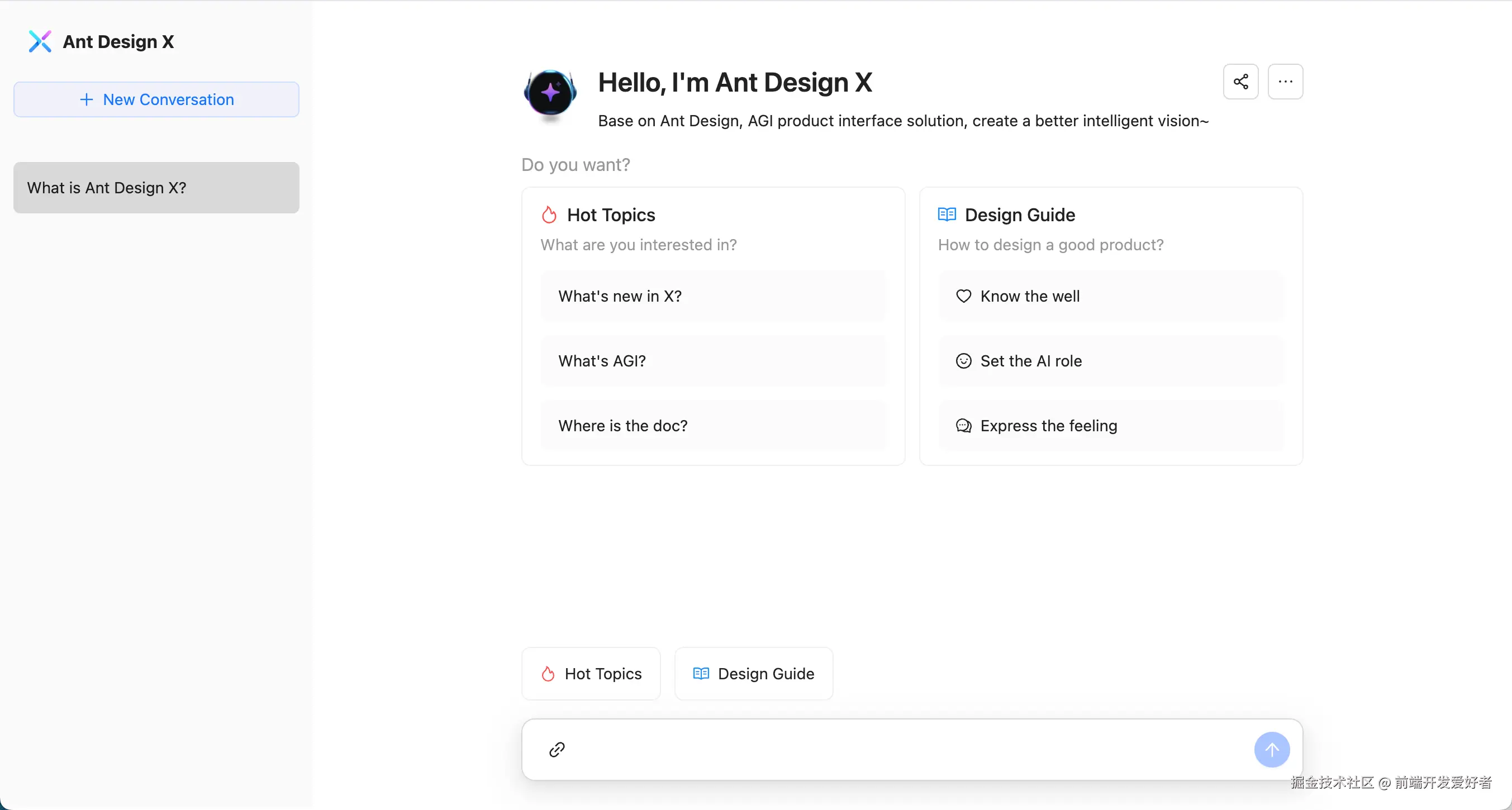 升级版本聊天界面可以参考官方案例:x.ant.design/docs/playgr…