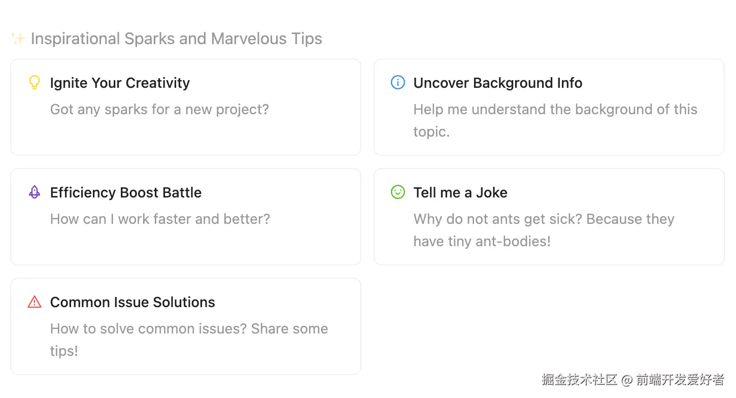 Prompts 组件用于显示一组与当前上下文相关的预定义的问题或建议