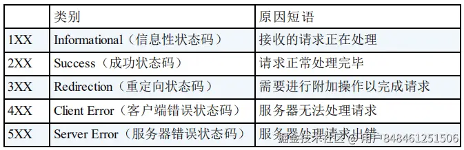 其中,HTTP-Version表示服务器HTTP协议的版本;Status-Code表示服务器发回的响应状态代码;Reason-Phrase表示状态代码的文本描述。
