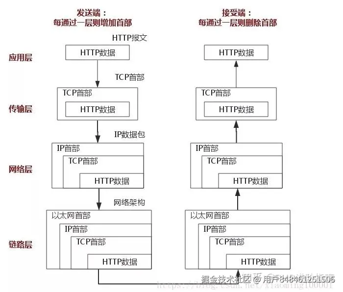 客户端输入URL回车,DNS**解析域名得到服务器的 IP 地址,服务器在80端口监听客户端请求,端口通过TCP/IP协议(可以通过Socket实现)建立连接。HTTP属于TCP/IP模型中的运用层协议,所以通信的过程其实是对应数据的** 入栈 和 出栈。