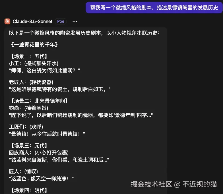 若是直接让 AI 出剧本,就会发现,AI 默认出的都是人物写实或宏观的,这根本不符合客户的要求: