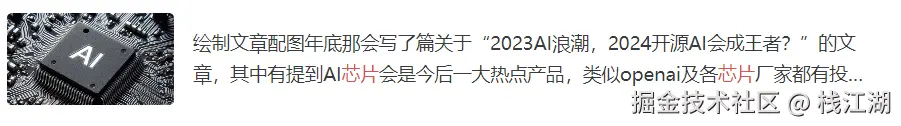 如之前写的一篇关于AI芯片的文章。在这里使用AI产品生成一张AI芯片图片的话就非常的方便,还没有版权所带来的问题。
