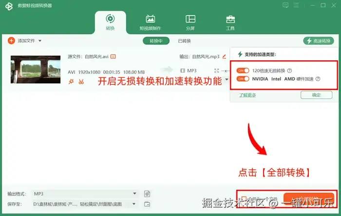 第三步:点击【高速转换】,开启无损转换和加速转换功能,然后点击【全部转换】。