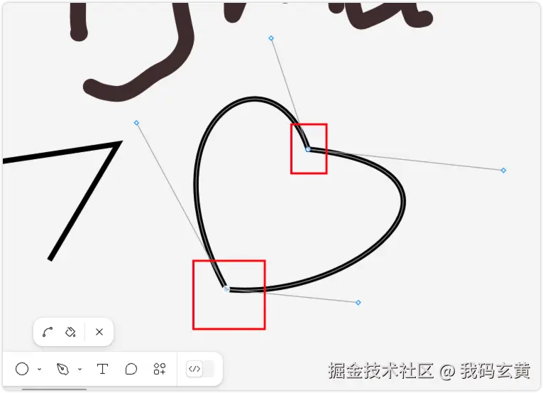 钢笔工具则是规则图形的组合工具,包括曲线,两个外部的锚点更像是bezier曲线的两个控制点。