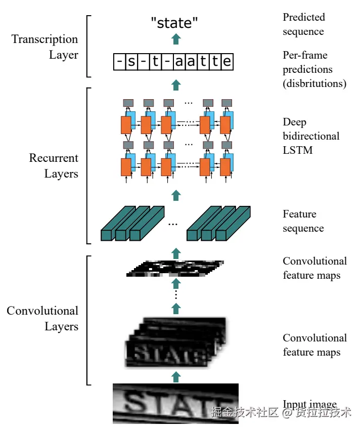 基于CTC的CRNN算法,网络架构如下所示: