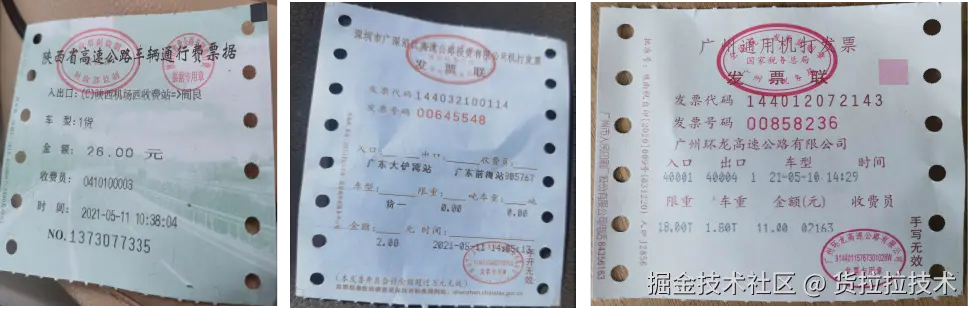 以高速小票为例,下图展示了不同样式的高速小票: