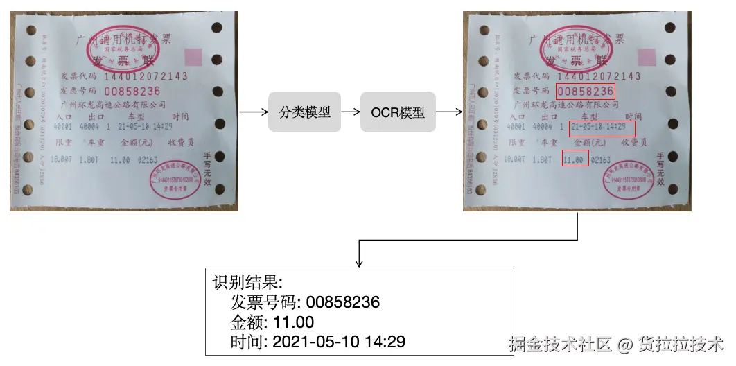 高速小票关键信息的识别过程,如下所示: