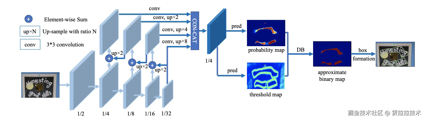 2. DBNet(Differentiable Binarization Network):DBNet引入了可微分的二值化模块,提升了文本边界的精确度。其结构简单,检测速度快,对弯曲和不规则文本效果好。