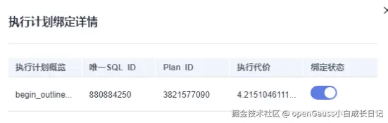 将特定的执行计划与SQL语句绑定在一起,以提升被纳管主备版数据库实例查询性能,并确保执行计划的稳定性。