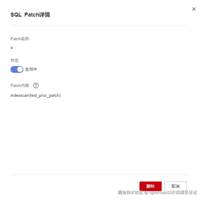 单击“删除”,则可删除SQL Patch。