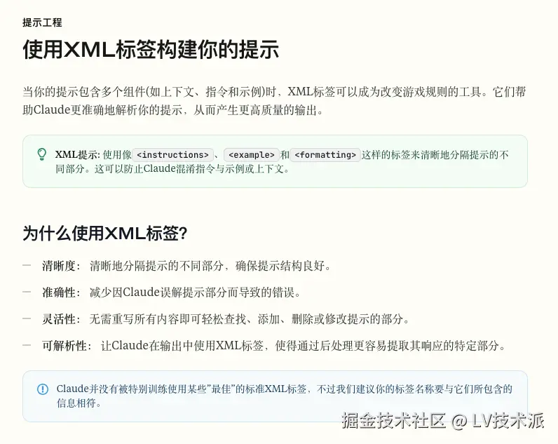 Claude 官方的提示词工程指南也大力推荐 XML 语法 👇