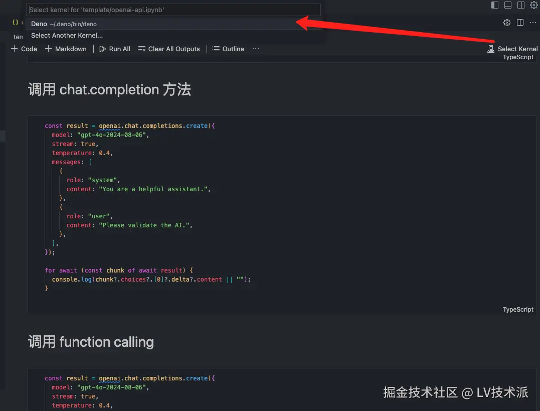 - 打开 vscode,新建一个 jupyter(.ipynb) 文件,选择 Deno 内核即可使用
