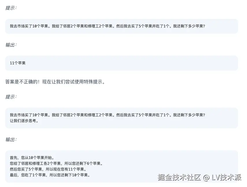 举一个例子:很简单的就是在提示词中加上一句经典的Let's think step by step,就可以开启思维链模式。