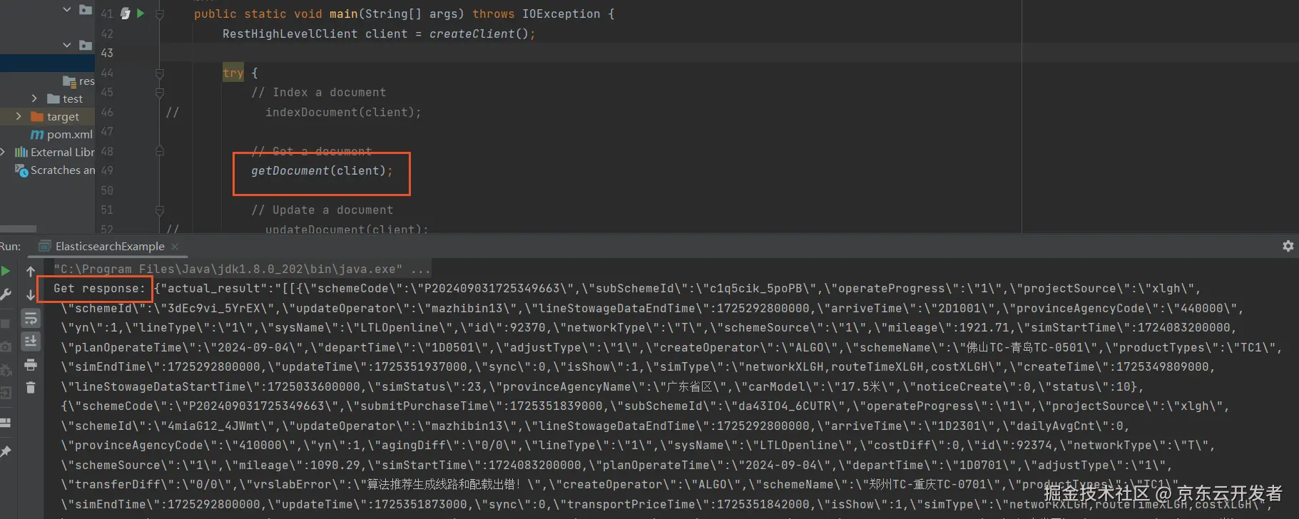 System.out.println("Get response: " + getResponse.getSourceAsString());