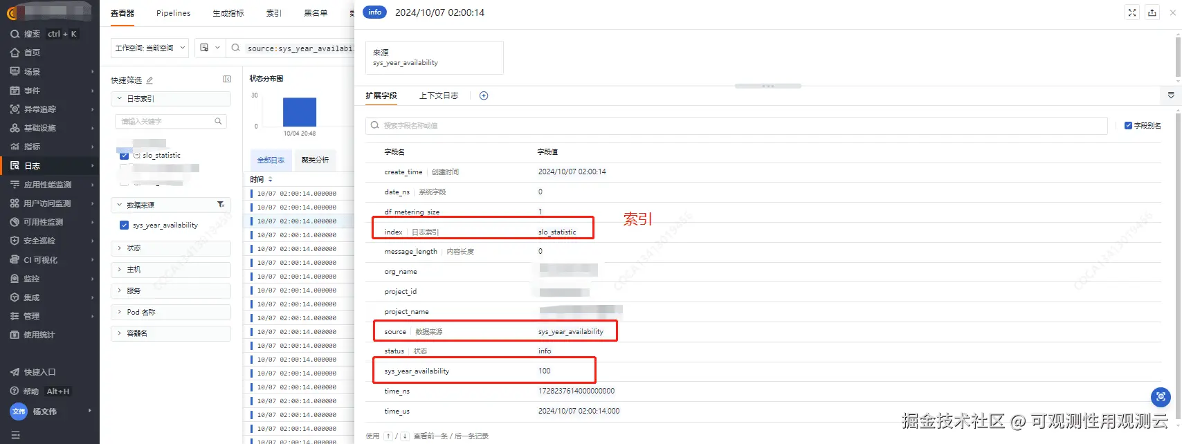 - 索引名称:slo_statistic
