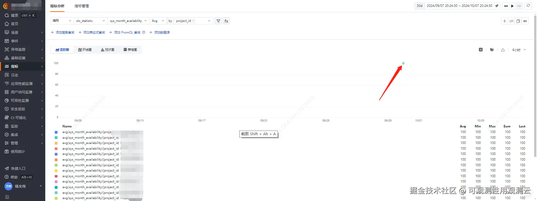 - 每个租户空间已设置 SLO 监控项目