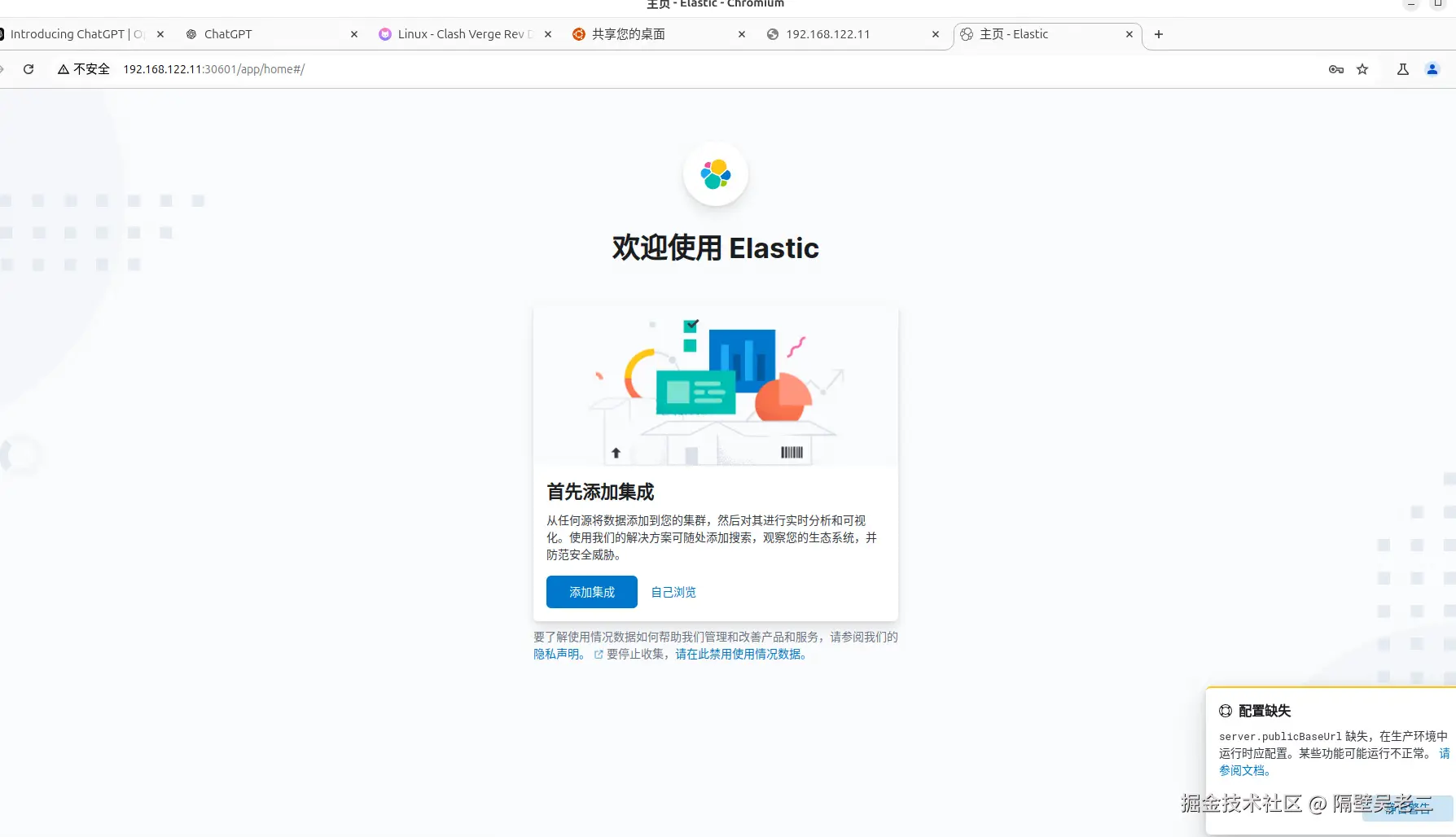 登录成功后就跳转到 Kibana 主界面: