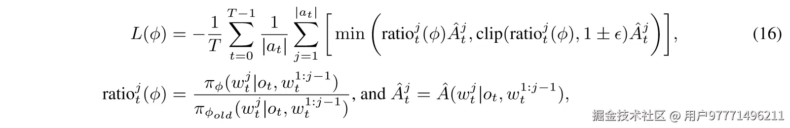其中,表示目标网络的不可微参数,定期更新。策略网络的参数记为φ,优化遵循剪辑PPO目标: