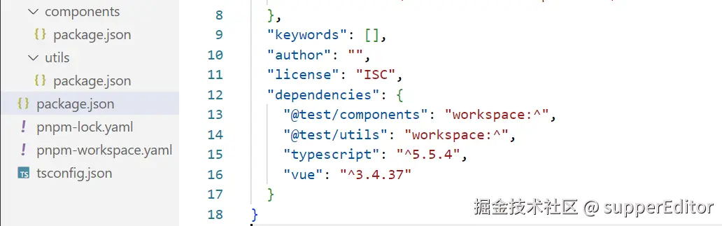 在成功注册后,根目录中 package.json 的开发依赖有以下模块,可以将 "workspace:*" 更改 "workspace:*" 代表全部版本。