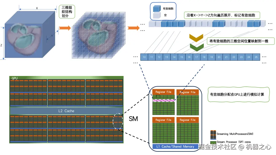 图注 3:心脏模型有效数据在 GPU 内存上的排布。