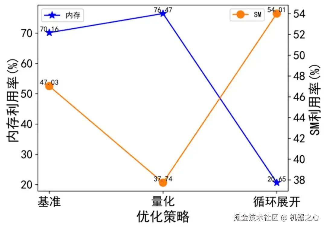 图注 9:不同优化策略的内存和 SM 利用率。