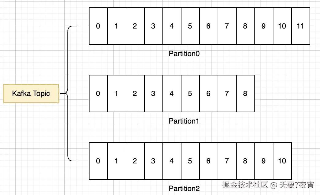 但是,不同业务对应的数据量级是不一样的,就算按业务分了Topic,但一个Topic可能信息还是会非常多,我们需要进一步分而治之,所以Topic下面还划分了Partition来实际存储,每个Topic都可以有多个Partition,即分区,也可以叫分片。